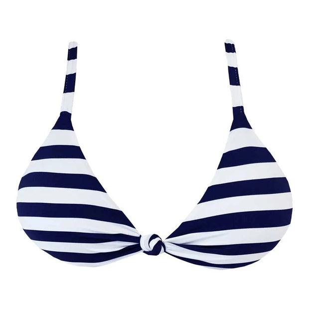 Regular price $49.90 0% OFFBrazilian triangle top bikini, blue and white sea breeze, with removable and mallable pads, non-breakable and non-water absorbing, developed with LYCRA® fabric tecnology, with UVA and UVB +50 sun protection. Exclusive piece of Marétoa Summer Collection, with fine workmanship, invisible stitching and polyamide lining, giving greater comfort to the skin.